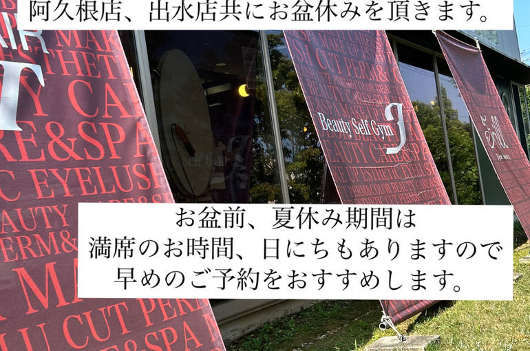 8月13日(水)~15日(金)の3日間は阿久根店、出水店共にお盆休みを頂きます。